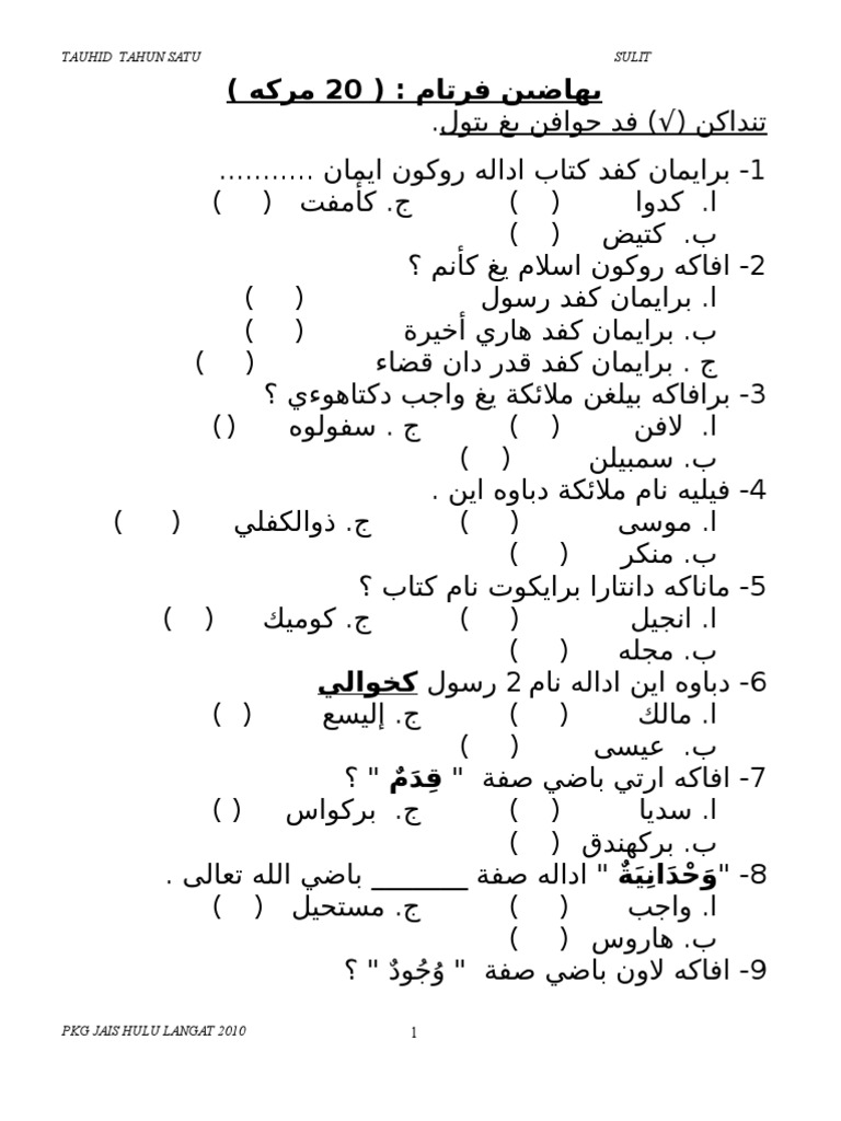 TAUHID TAHUN 1 JAWI. Soalan Analisis Tauhid Feqah PDF. Tolok ukur kebenaran tafsir ISBN.
